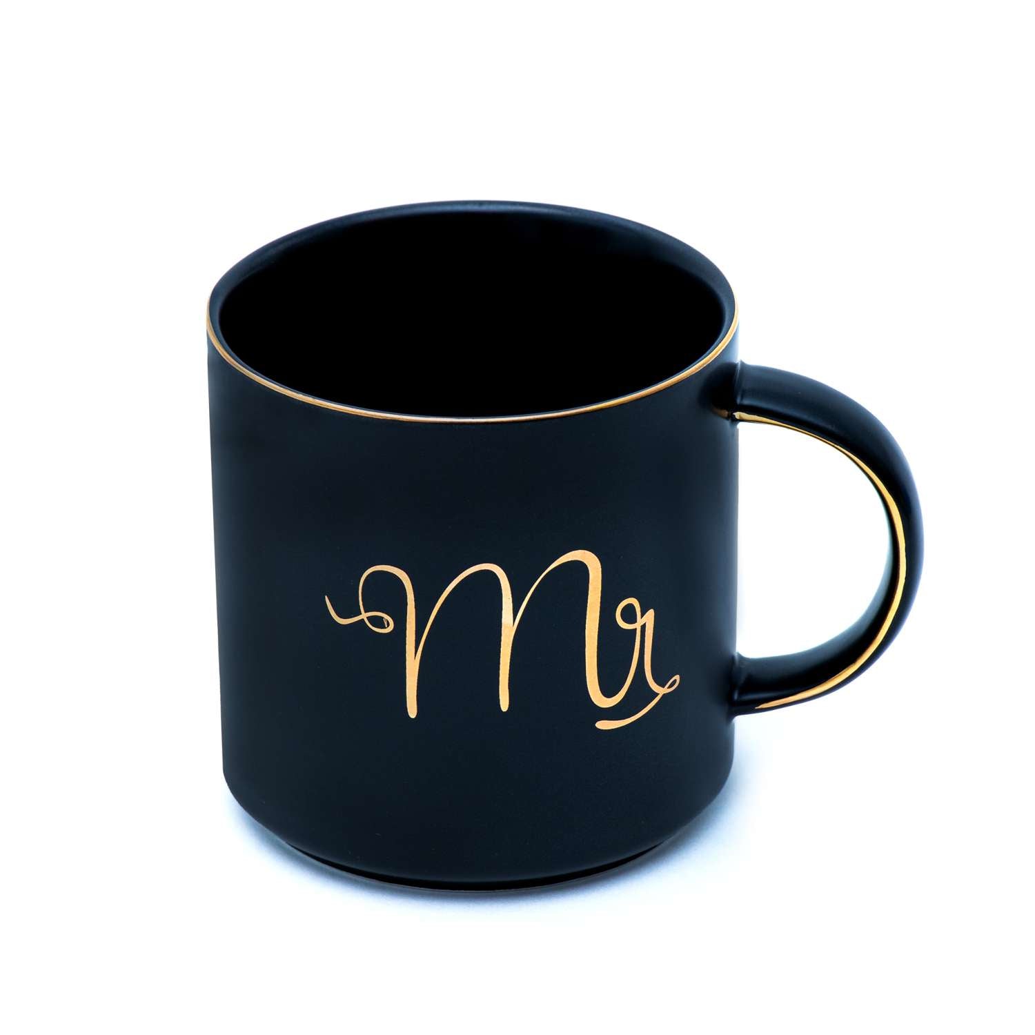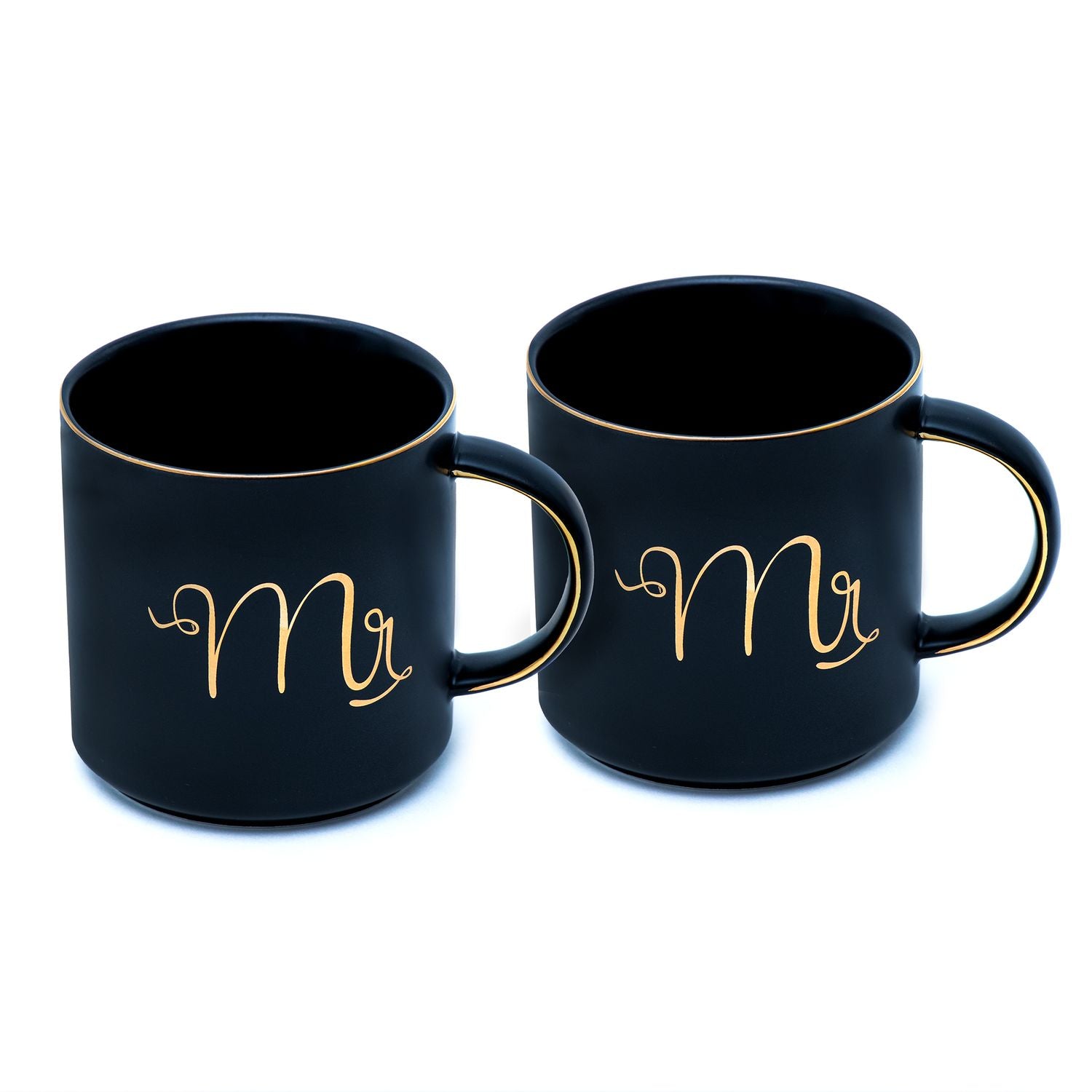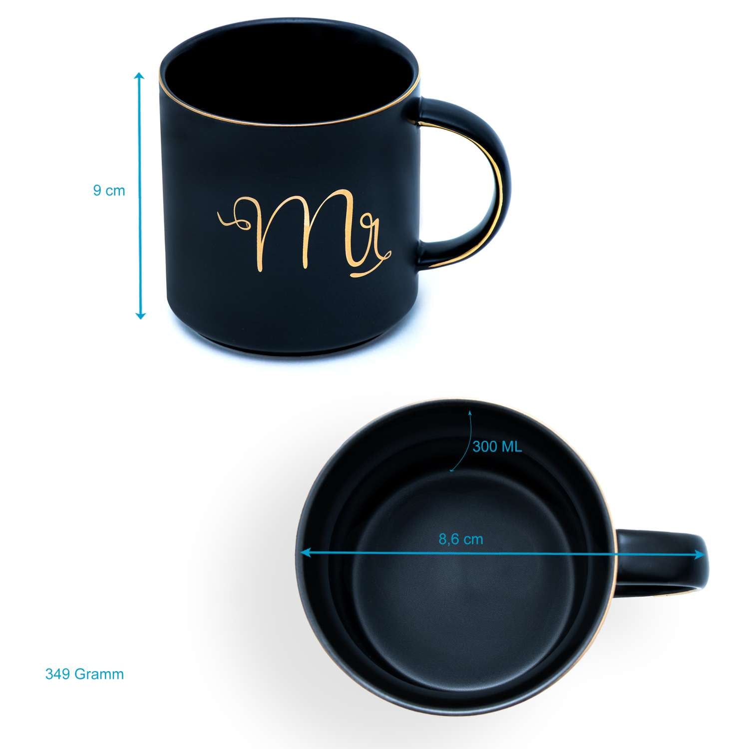 Intirilife Kaffeetasse in Weiß und Schwarz mit Goldrand und Aufschrift Mr und Mrs auf jeweils einer Tasse - 300 ml