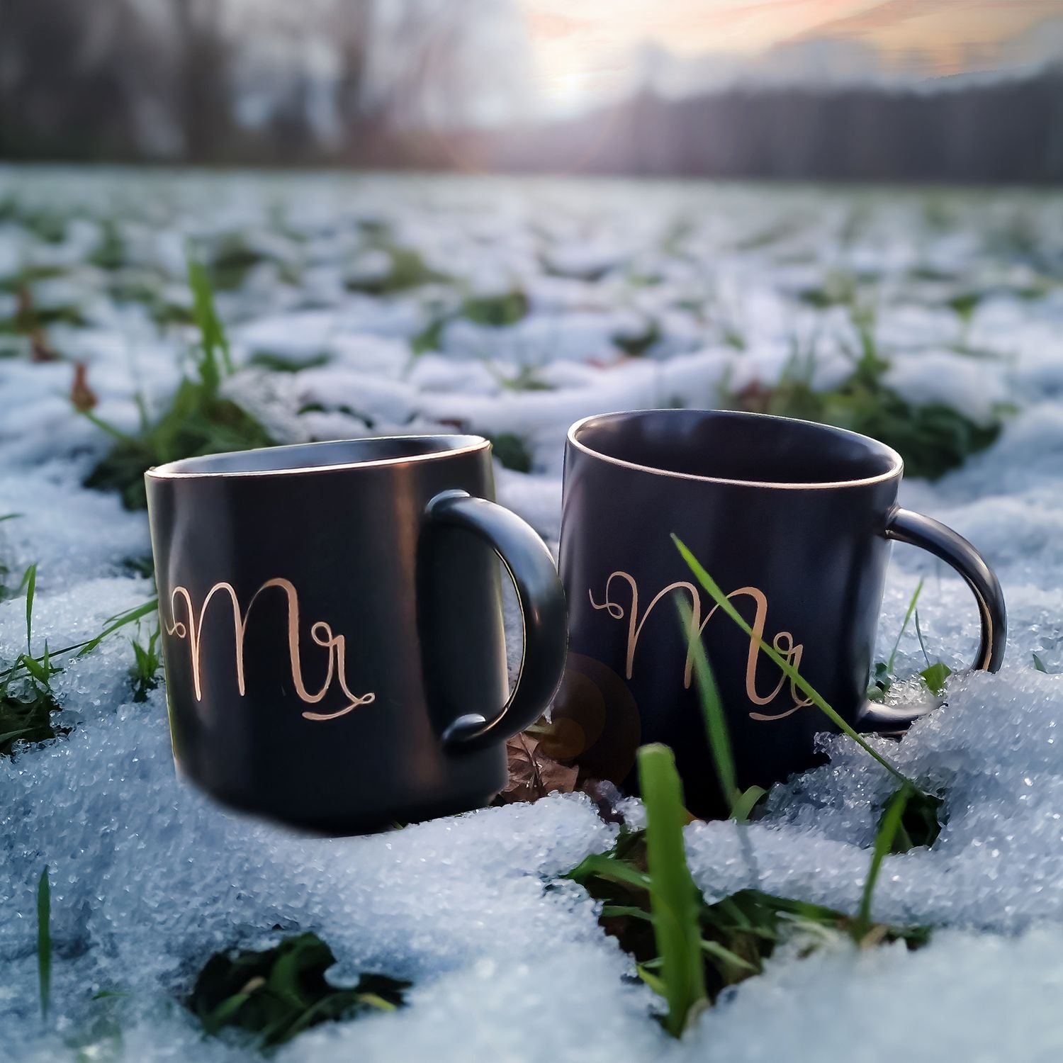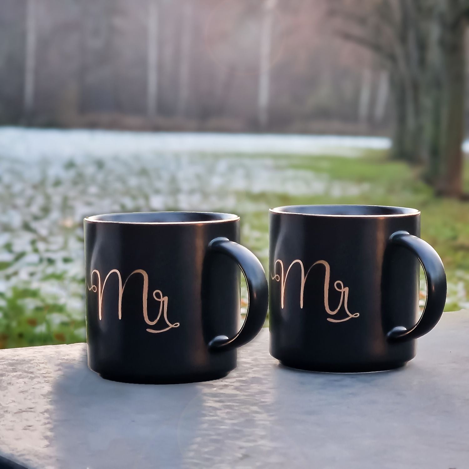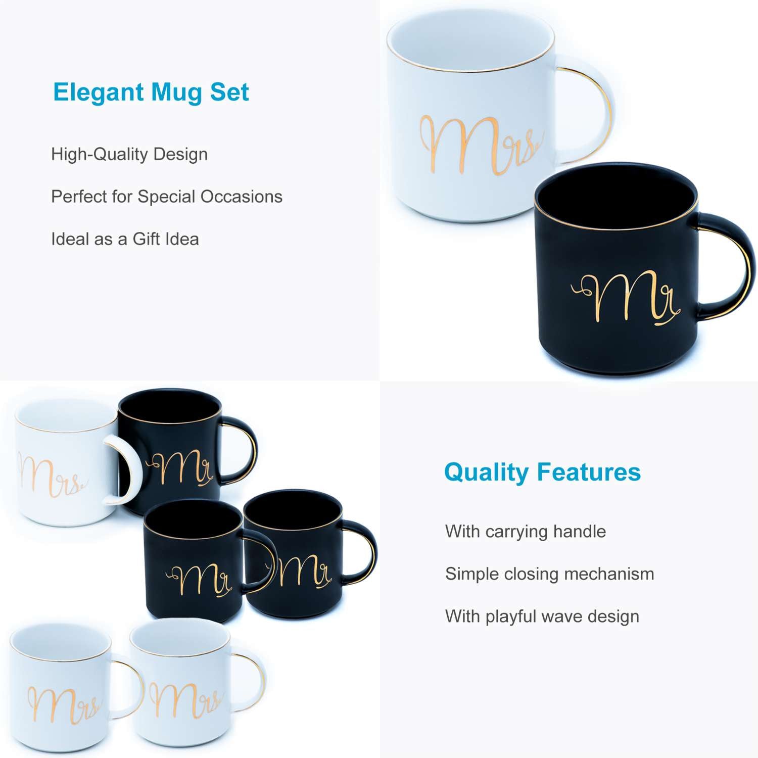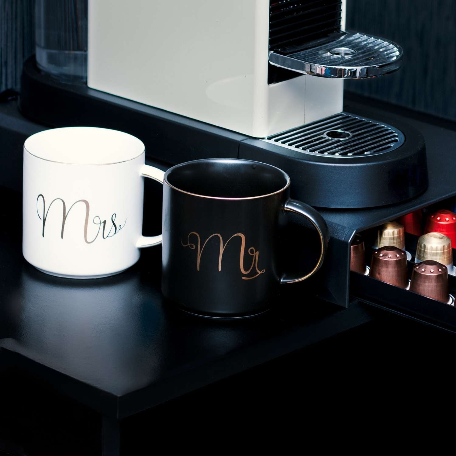Intirilife Kaffeetasse in Weiß und Schwarz mit Goldrand und Aufschrift Mr und Mrs auf jeweils einer Tasse - 300 ml