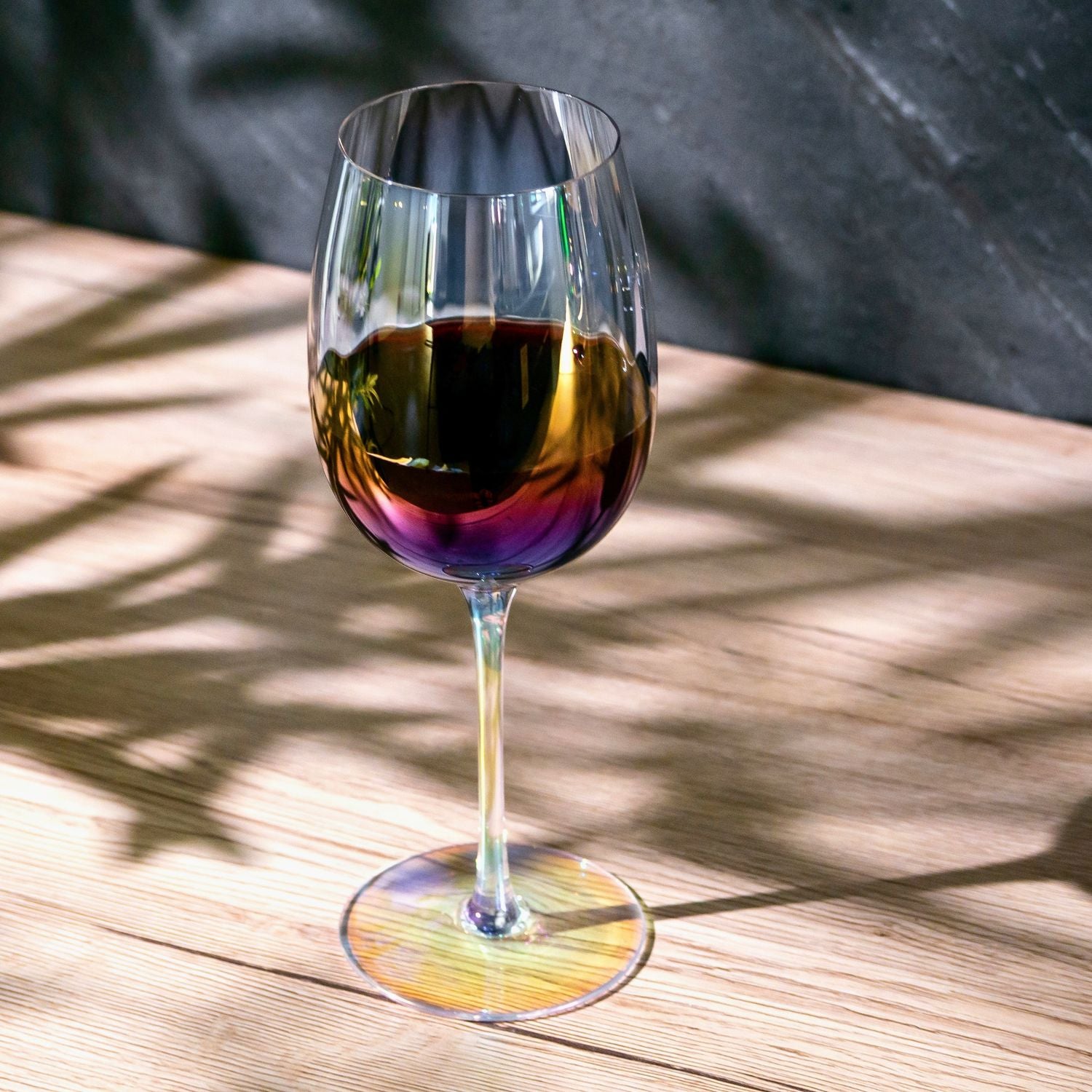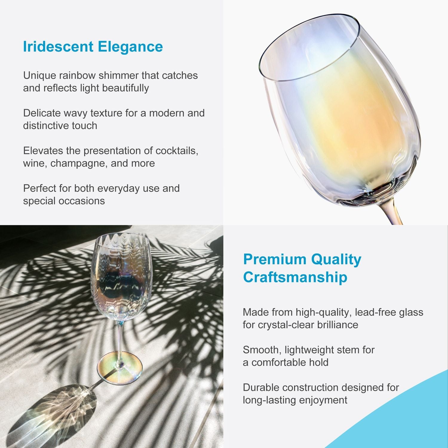 Intirilife Wein Glas mit Regenbogen Schimmer und Wellenform - 440 ml Füllmenge