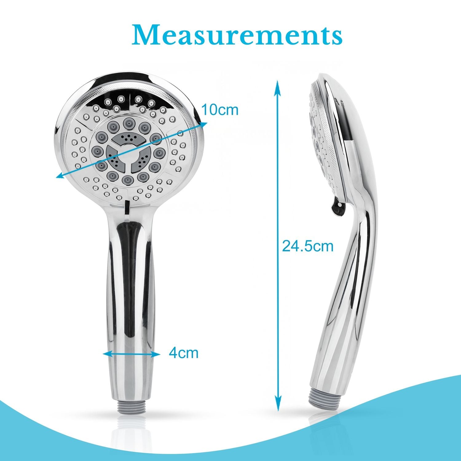 • Die elegante Handbrause mit rundem Kopf liegt gut in der Hand und bietet 5 unterschiedliche Funktionen ganz nach Ihren Bedürfnissen an. Mit dem Drehknopf können Sie einfach zwischen folgenden Funktionen wählen: Starker Regen / Massage / Sprüh Regen / Starker Regen + Massage / Starker Regen + Sprüh Regen
